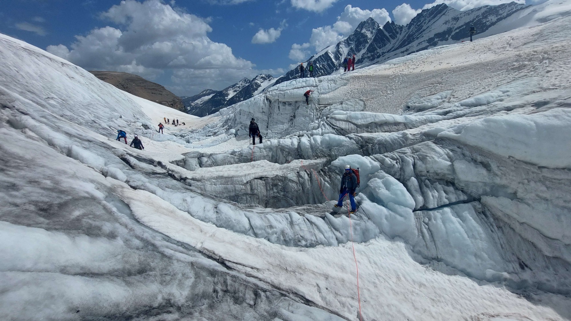 Během dne dokončíme záchranné techniky používané při vyproštění spolulezce a na skále se naučíme slaňování, záchranu ve 2,3 a více lidech, sebezáchranu. Výstup na nedalekou 3000ku a traverz exponovaného hřebene a přechod ledovce s překonáním strmého úseku.